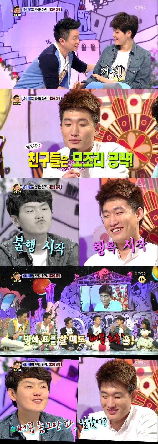 14일 오후 11시 10분에 방송된 KBS2 '대국민 토크쇼 안녕하세요'에는 자꾸 배꼽을 만지는 친구 때문에 고민인 남성의 사연이 전파를 탔다.