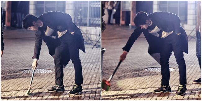 사진 속에서 김강우는 촬영이 끝난 뒤 직접 빗자루를 들고 바닥을 쓸고 있다. 허리를 90도로 숙이고 보도 블록 틈새까지 세세하게 쓸고 있는 김강우의 모습에서 빗자루 질 ‘장인 정신’마저 느껴질 지경. 이 와중에 ‘배우 포스’를 잃지 않고, 한 손은 무심한 듯 시크하게 주머니에 꽂고 폭풍 빗자루 질을 하는 김강우의 센스 있는 모습에 보는 이들 모두 웃음을 참지 못했다는 후문이다.