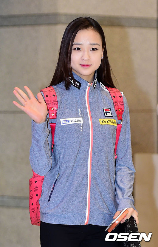 손연재가 입국장을 나가며 취재진을 향해 손을 흔들고 있다.