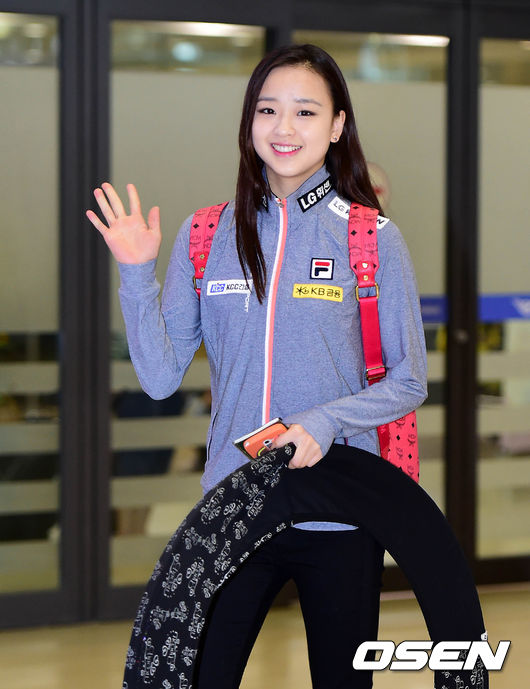 손연재가 입국장을 나가며 취재진을 향해 손을 흔들고 있다.