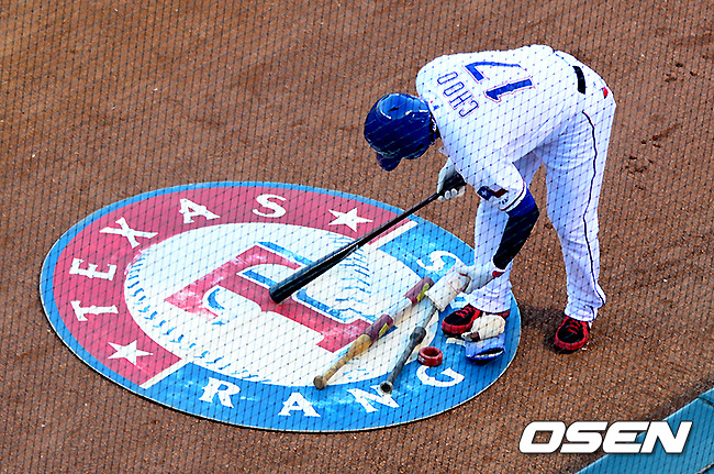 1회말 텍사스 추신수가 첫 타석을 준비하고 있다.