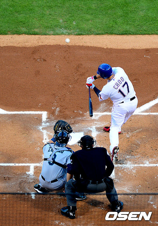 1회말 텍사스 추신수가 타격을 하고 있다.