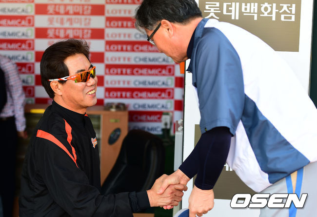 경기전, 롯데 김시진 감독과 NC 김경문 감독이 인사를 나누고 있다.