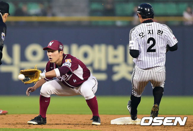 15일 오후 서울 잠실구장에서 열린 '2014 한국야쿠르트 세븐 프로야구' LG 트윈스와 넥센 히어로즈의 경기 2회말 2사 1루 손주인 타석, 1루주자 오지환이 도루에 성공하고 있다.