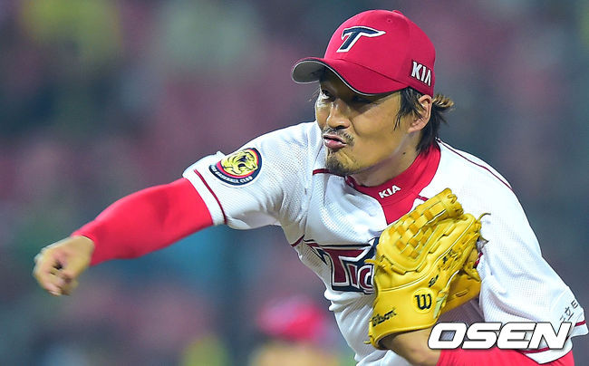 KIA 김태영이 역투하고 있다.