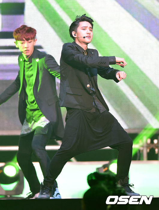 그룹 엑소 디오가 화려한 공연을 펼치고 있다.