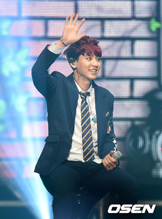 그룹 엑소 찬열이 팬들을 향해 인사를 하고 있다.