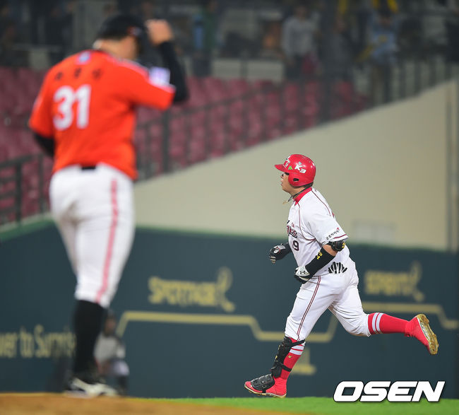 8회말 1사 1루 KIA 나지완이 투런 홈런을 때린 뒤 베이스를 돌고 있다.
