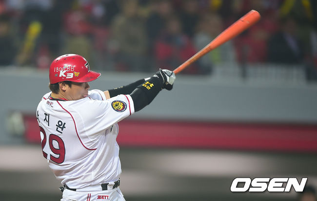 8회말 1사 1루 KIA 나지완이 투런 홈런을 때리고 있다.