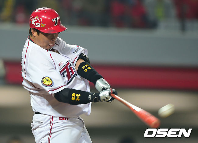 8회말 1사 1루 KIA 나지완이 투런 홈런을 때리고 있다.