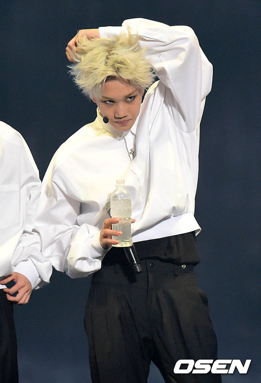 그룹 엑소 카이가 공연 후 땀을 닦고 있다.
