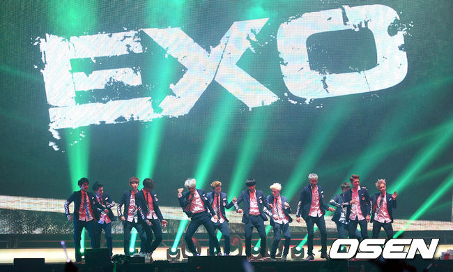 그룹 엑소가 화려한 공연을 펼치고 있다.