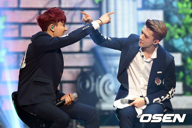 그룹 엑소 찬열과 세훈이 화려한 공연을 펼치고 있다.