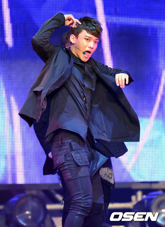 그룹 엑소 첸이 화려한 공연을 펼치고 있다.