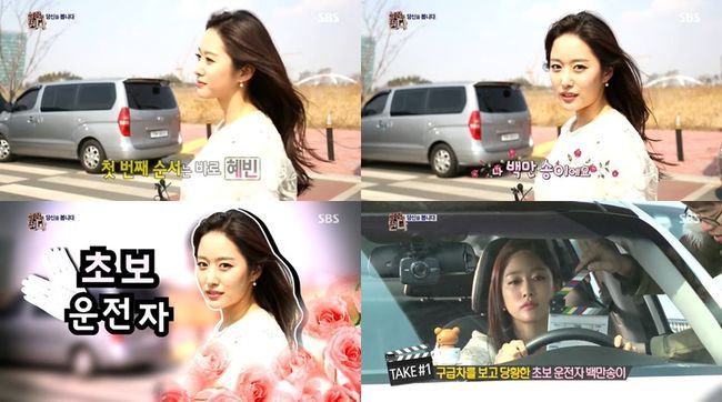 전혜빈은 15일 오후 방송된 SBS '심장이 뛴다'에서 초보 운전자 백만송이로 변신했다.