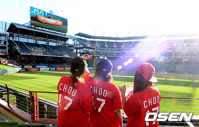 이날 텍사스는 '추신수 데이'를 마련, 경기 전 14세 이상 입장 관객 1만5000명에게 추신수 이름과 등번호(17번)이 적힌 티셔츠를 무료로 나눠준다.