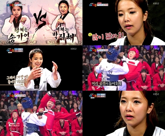 송가연의 '예체능' 태권도 완패에 누리꾼들은 "송가연, 태권도와 격투기는 되게 다른 것 같다", "송가연, 되게 당황해하는 게 보였다", "송가연, 태권도가 채점제라 더 그런 듯" 등의 반응을 보였다.