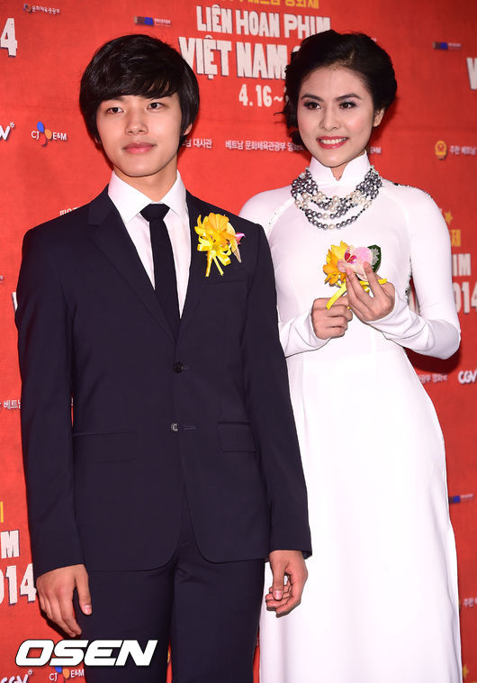 16일 오후 서울 여의도CGV에서 열린 '2014 베트남 영화제' 개막식에서 베트남 여배우 번짱과 여진구가 포즈를 취하고 있다