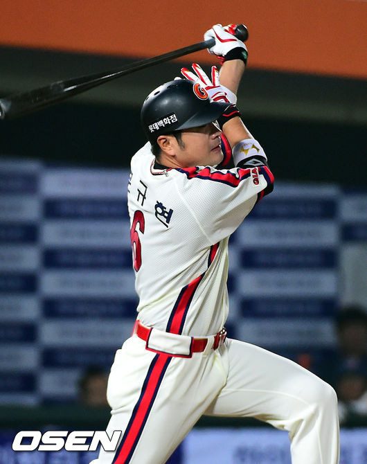 2회말 무사 주자 없는 상황에서 롯데 문규현이 우익수 앞 안타를 날리고 있다.