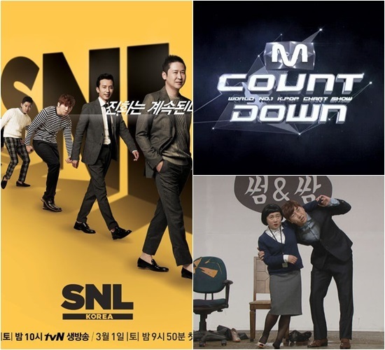 엠넷, tvN 관계자는 16일 OSEN에 "엠넷 '엠카운트다운', tvN 'SNL코리아', '코미디빅리그' 등이 결방된다"고 밝혔다.