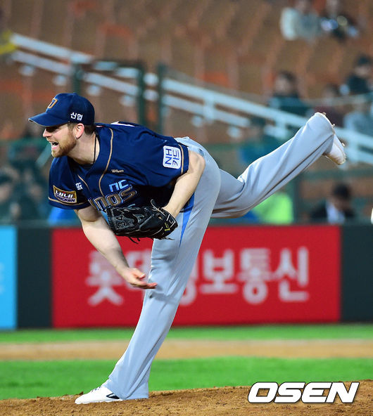 4회말 NC 선발투수 에릭이 힘차게 공을 뿌리고 있다.