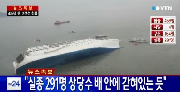 오후 7시 30분 기준 발표에 의하면 총 탑승 인원이 459명이고, 164명이 구조된 가운데 4명이 사망했다. 여전히 291명이 실종상태다.