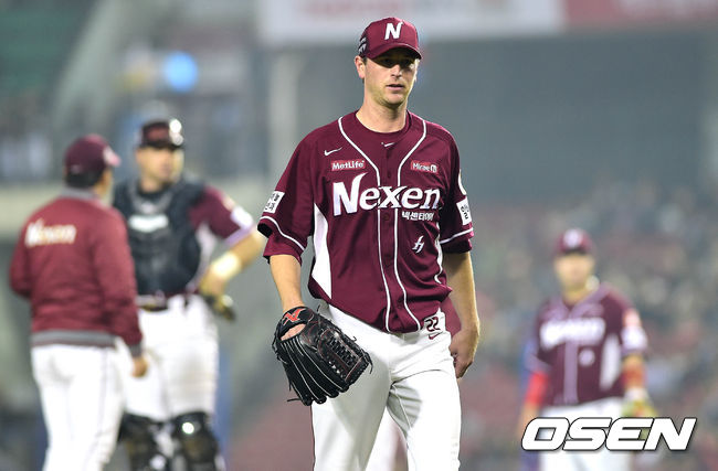 16일 오후 서울 잠실구장에서 열린 '2014 한국야쿠르트 세븐 프로야구' LG 트윈스와 넥센 히어로즈의 경기 7회말 1사 1루 손주인 타석, 밴 헤켄이 마운드를 내려가고 있다.