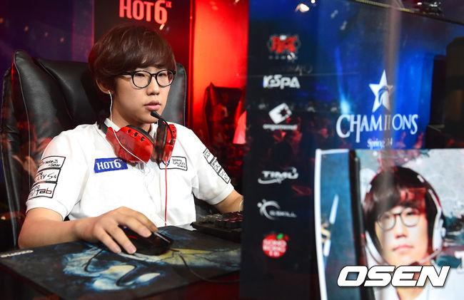 16일 오후 서울 용산 e스포츠센터에서 진행된 '핫식스 LOL 챔피언스(이하 롤챔스)' 8강 SK텔레콤 K와 삼성 오존의 경기, 1세트 승리를 거둔 삼성 오존 구승빈이 플레이를 펼치고 있다.