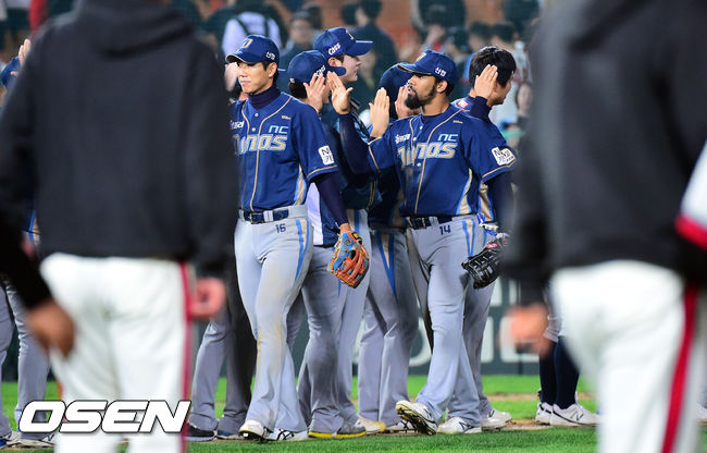 경기종료, 5연승에 성공한 NC 선수들이 하이파이브를 하고 있다. /ouxou@osen.co.kr