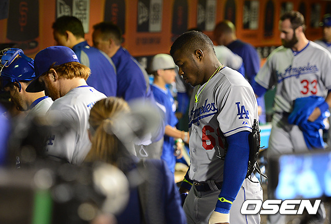 경기후 다저스 푸이그를 비롯한 선수들이 아쉬운 표정을 더그아웃을 빠져 나가고 있다./jpnews@osen.co.kr