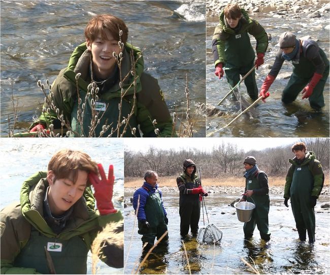 ‘사남일녀’ 김우빈이 낚시를 처음 해보는 데도 불구하고 1급수에서만 사는 물고기 쉬리를 잡아 낚시신동에 등극했다.