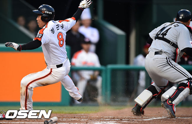 홈베이스 지나친 정근우,'어라! 너무 멀리까지 왔네'