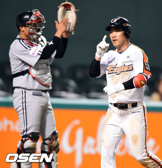 한화 2루수 정근우(32)가 이적 첫 홈런을 신고했다.