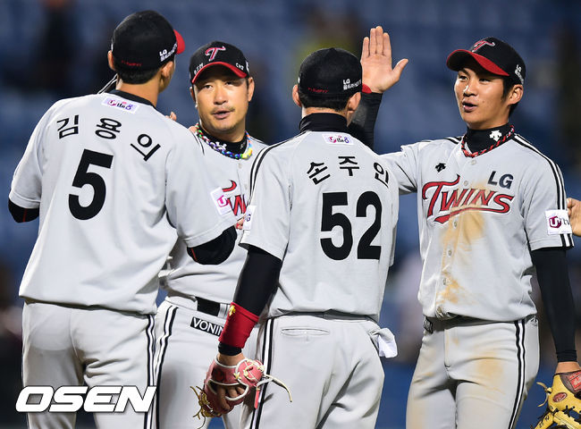 경기종료 후 LG선수들이 승리의 기쁨을 나누고 있다. /soul1014@osen.co.kr