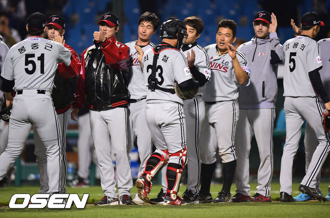 경기 종료 후 LG선수들이 승리의 기쁨을 나누고 있다. /soul1014@osen.co.kr