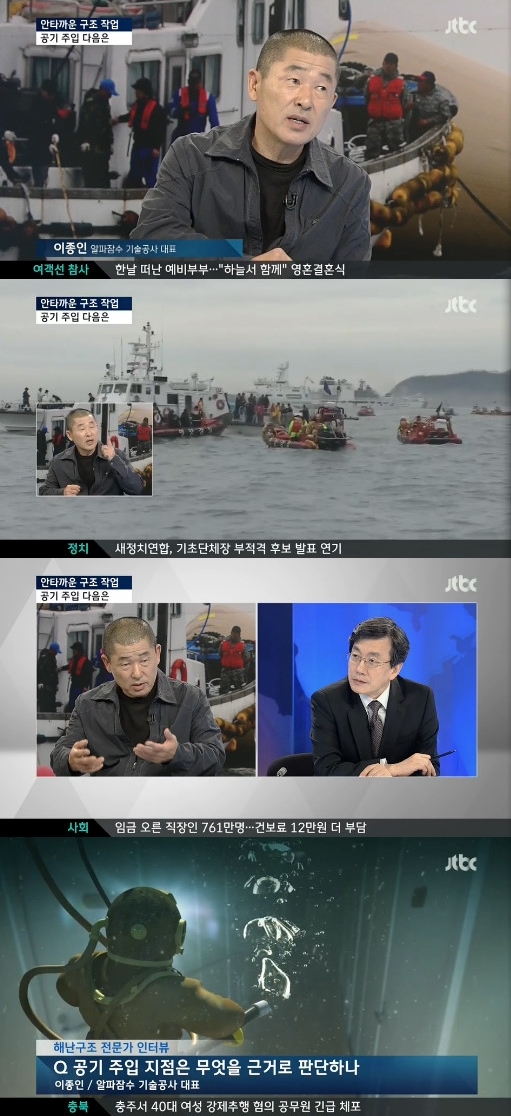 이에 손석희 앵커는 “현재 마스크가 벗겨질 정도로 유속이 빠르다고 하니, 실제 (다이빙벨이) 검증된 것이라면 당국에서도 적극적으로 고려해보면 좋겠다”는 바람을 드러냈다.