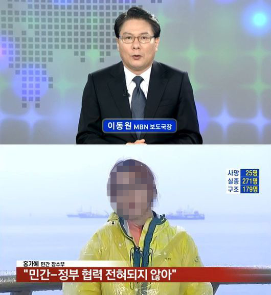 이동원 보도국장은 “오늘 아침 6시 MBN 뉴스 특보 프로그램에서 전남 진도 세월호 침몰 구조 현장의 민간 잠수사 인터뷰를 생방송으로 연결해 방송했다. 방송에서 민간 잠수사 홍 씨는 ‘해양경찰이 민간 잠수사들의 구조 작업을 막고 있다’는 주장과 ‘위험하니 대충 시간이나 떼우고 가라’ 그리고 ‘또 다른 민간 잠수사가 세월호에 생존자를 확인했다는 이야기를 들었다’고 말했다”고 전했다.