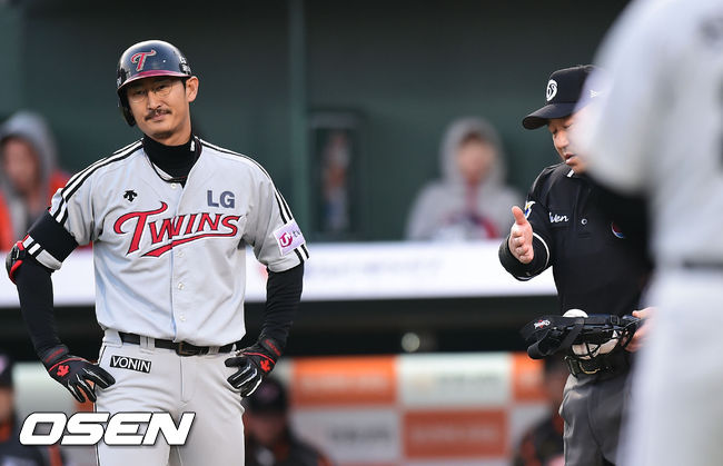 19일 오후 대전구장에서 열린 '2014 한국야쿠르트 세븐 프로야구' 한화 이글스와 LG 트윈스의 경기, 5회초 2사 LG 박용택이 낫아웃 판정에 항의하고 있다.