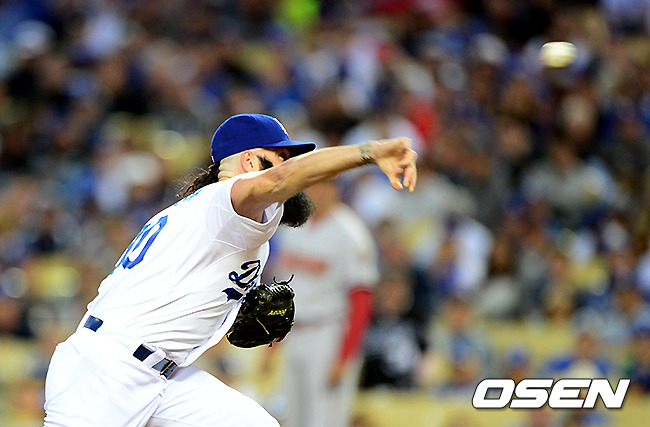 8회초 1사 1루에서 마운드에 오른 다저스 윌슨이 역투하고 있다./jpnews@osen.co.kr