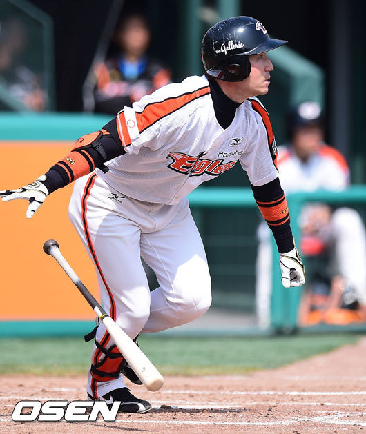 20일 오후 대전구장에서 열린 '2014 한국야쿠르트 세븐 프로야구' 한화 이글스와 LG 트윈스의 경기, 2회말 2사 1,2루 한화 한상훈이 1타점 적시타를 날리고 있다.