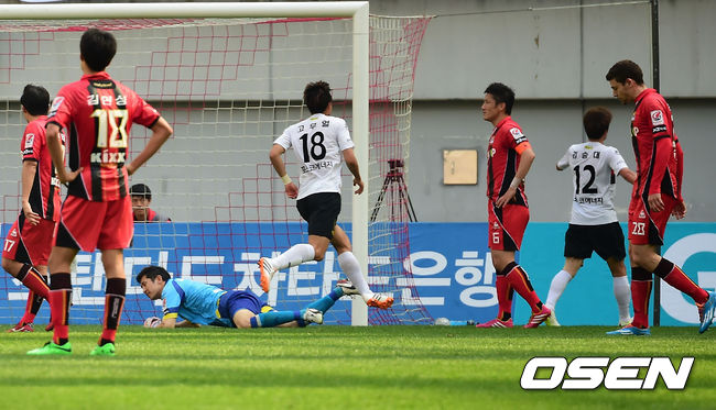 20일 오후 서울 월드컵 경기장에서 열린 ‘현대오일뱅크 K리그 클래식 2014’ 9라운드 FC 서울과 포항 스틸러스의 경기, 후반 포항 김승대가 선제골에 성공한 후 기뻐하고 있다.