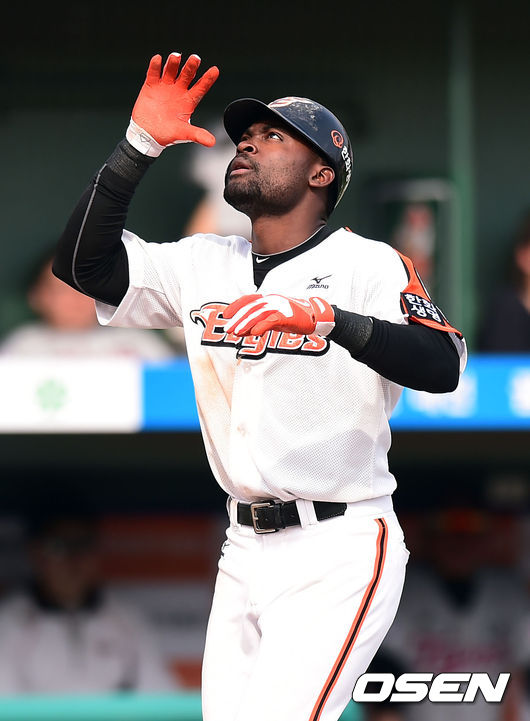 20일 오후 대전구장에서 열린 '2014 한국야쿠르트 세븐 프로야구' 한화 이글스와 LG 트윈스의 경기,5회말 무사 1루 한화 피에가 2점 홈런을 날리고 세레모니를 하고 있다.