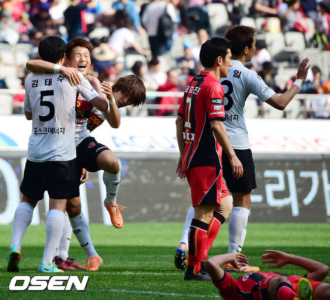 경기를 마치고 포항 선수들이 기뻐하고 있다. / rumi@osen.co.kr
