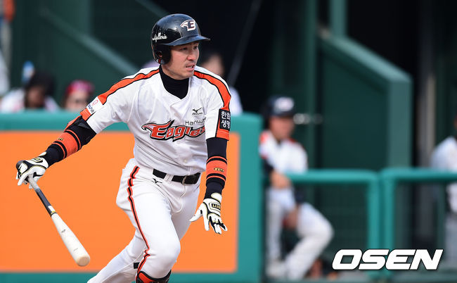 20일 오후 대전구장에서 열린 '2014 한국야쿠르트 세븐 프로야구' 한화 이글스와 LG 트윈스의 경기, 7회초말 1사 2루 한화 한상훈이 1타점 적시타를 날리고 있다.