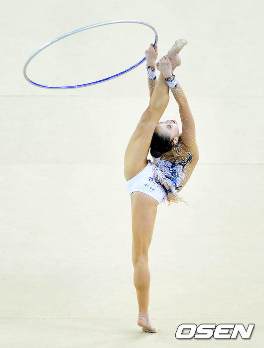 일본 미나가와 가호가 후프 연기를 펼치고 있다.
