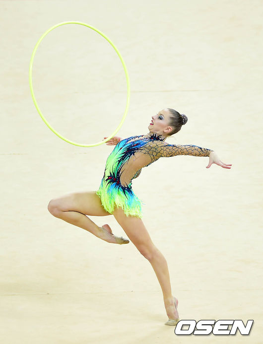 벨라루스 멜라티나 스타니우타가 후프 연기를 펼치고 있다.