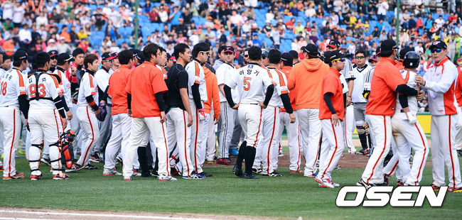 8회말 한화 정근우가 LG 정찬헌의 투구에 맞은 후 벤치클리어링이 발생되고 있다. /soul1014@osen.co.kr