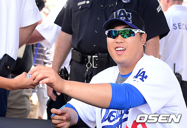 경기에 앞서 류현진이 자선 사인회를 하고 있다.