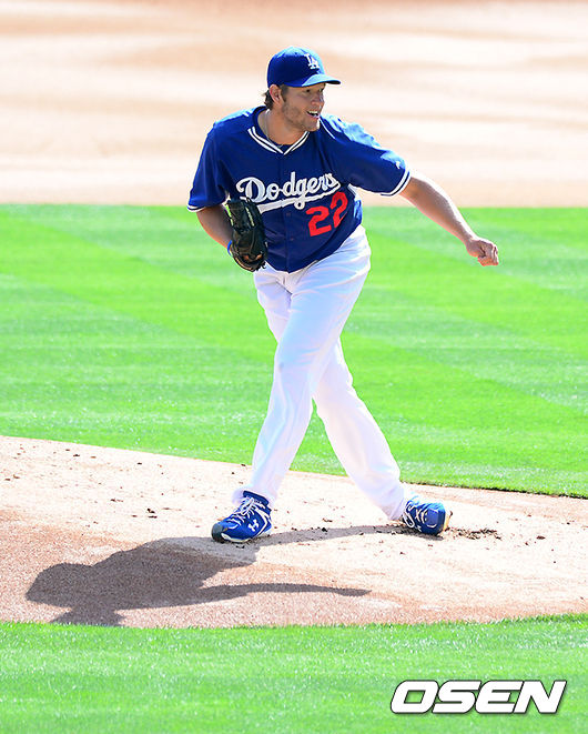 경기에 앞서 다저스 커쇼가 시뮬레이션 피칭을 하고 있다. /jpnews@osen.co.kr