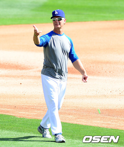 경기에 앞서 다저스 매팅리 감독이 커쇼의 시뮬레이션 피칭을 지켜보고 있다. /jpnews@osen.co.kr